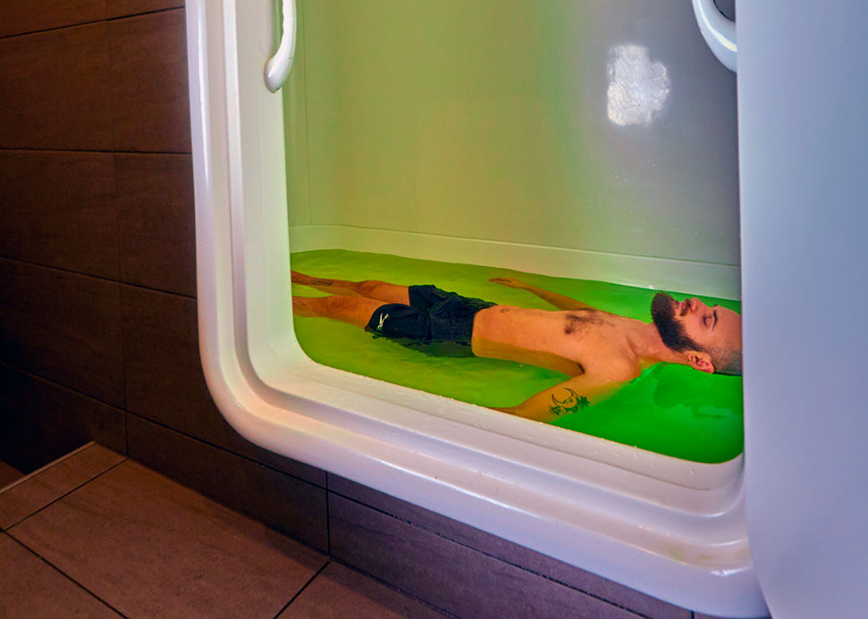 namely floating on salt water in a specially developed float room. While floating you experience what it feels like to float and be completely weightless for a moment. All stimuli such as gravity, light and sound are excluded, this becomes Floatation REST (Restricted Environmental Stimulation Technique). The water in the float room is heated to body temperature, so the body cannot feel a temperature difference with the water. This gives the feeling that the body is one with the water and your brain thinks that you are "floating".